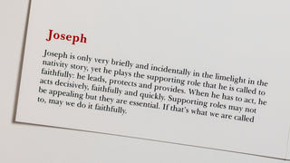 Inside each card is a short reflection on the nativity character illustrated on the front.